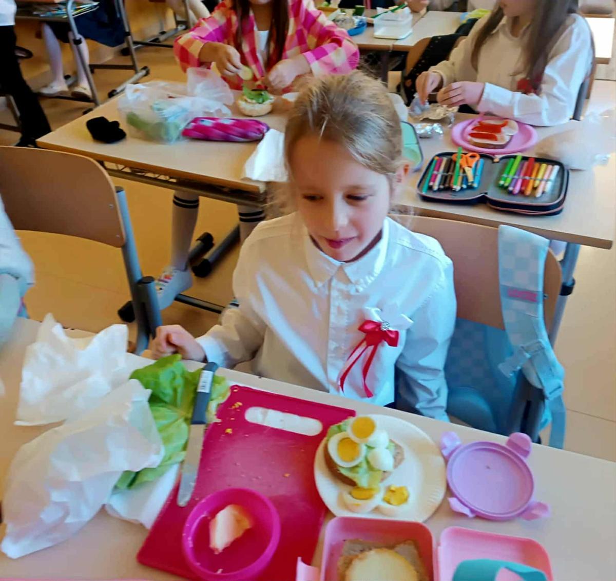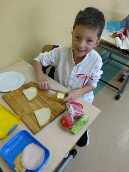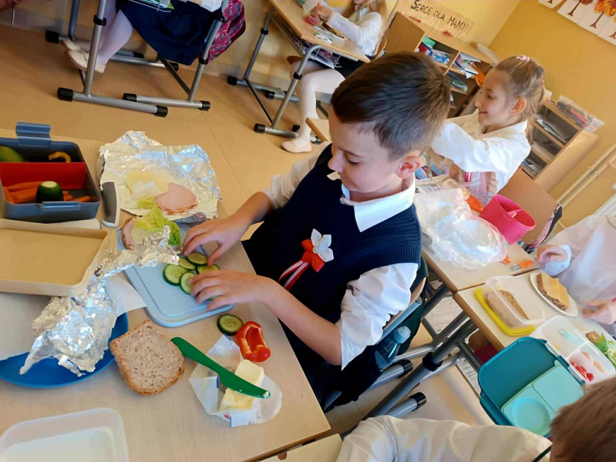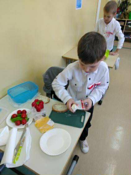 Wspólne i zdrowe śniadanie smakowało wyśmienicie, dało energię na cały dzień oraz dużo radości. Przygotowanie zdrowego śniadania, było podsumowaniem spotkania z dietetykiem Panią Anną Kusyk.