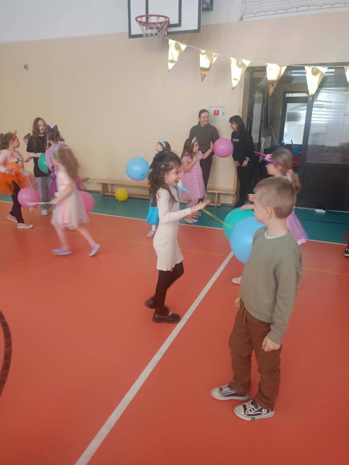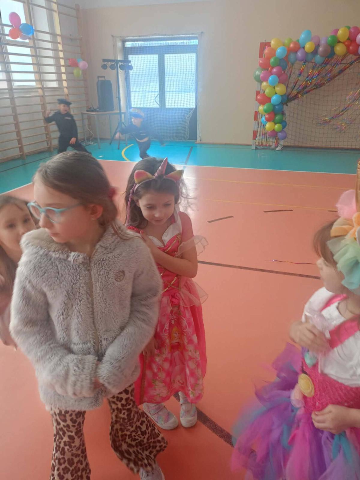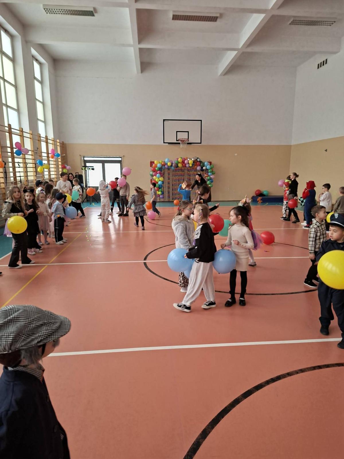 Był to dzień niecierpliwie wyczekiwany. Zjawiskowy wystrój sali wprowadził wszystkich w wesoły nastrój i zachęcił do wspólnej zabawy. Jak zwykle stroje naszych uczniów były różnorodne - od postaci bajkowych po superbohaterów, a także postacie fantastyczne. Tego dnia wszystkim towarzyszyło wiele emocji i wrażeń. Dekoracja zachęcała do wspólnej, wesołej zabawy. W czasie przerwy dzieci miały czas na poczęstunek przygotowany przez Radę Rodziców. Bal był również okazją do wykonania pamiątkowych zdjęć w karnawałowych przebraniach. Czas zabawy szybko minął, ale wszyscy tanecznym, wesołym krokiem ruszyliśmy w stronę swoich domów. Serdecznie dziękujemy naszej Radzie Rodziców, która jak zwykle w 100% podjęła się organizacji kolejnej imprezy w naszej szkole.