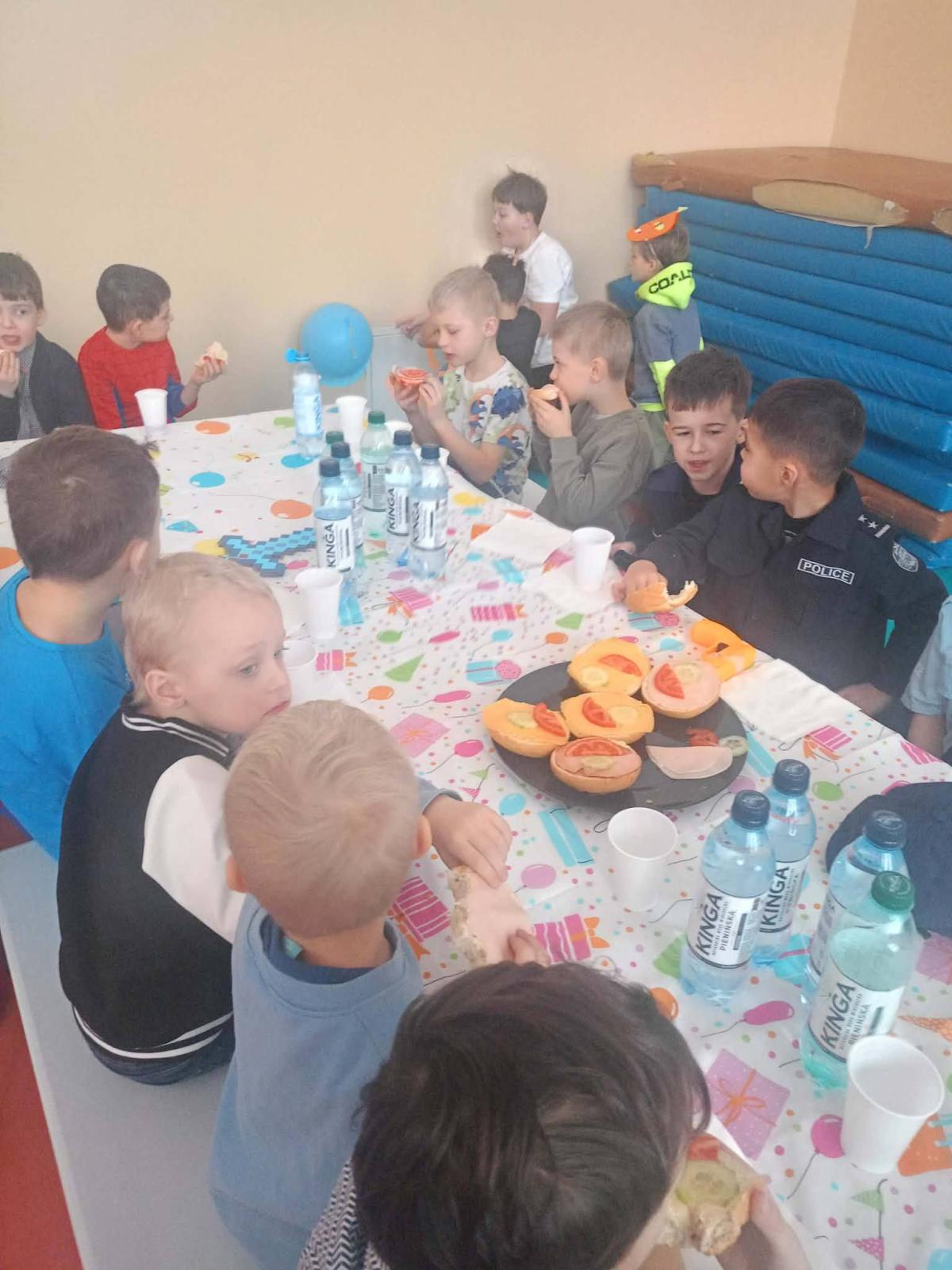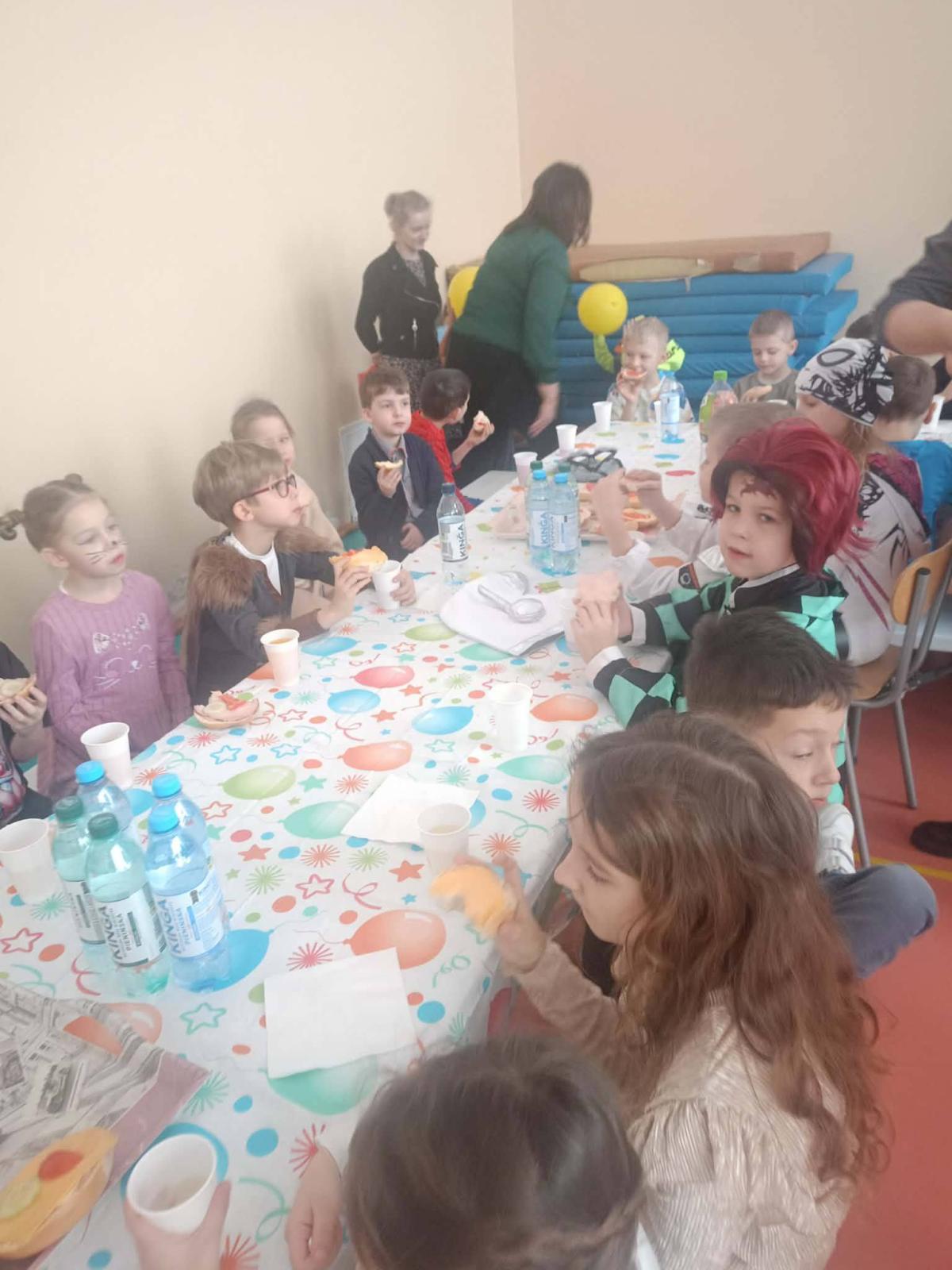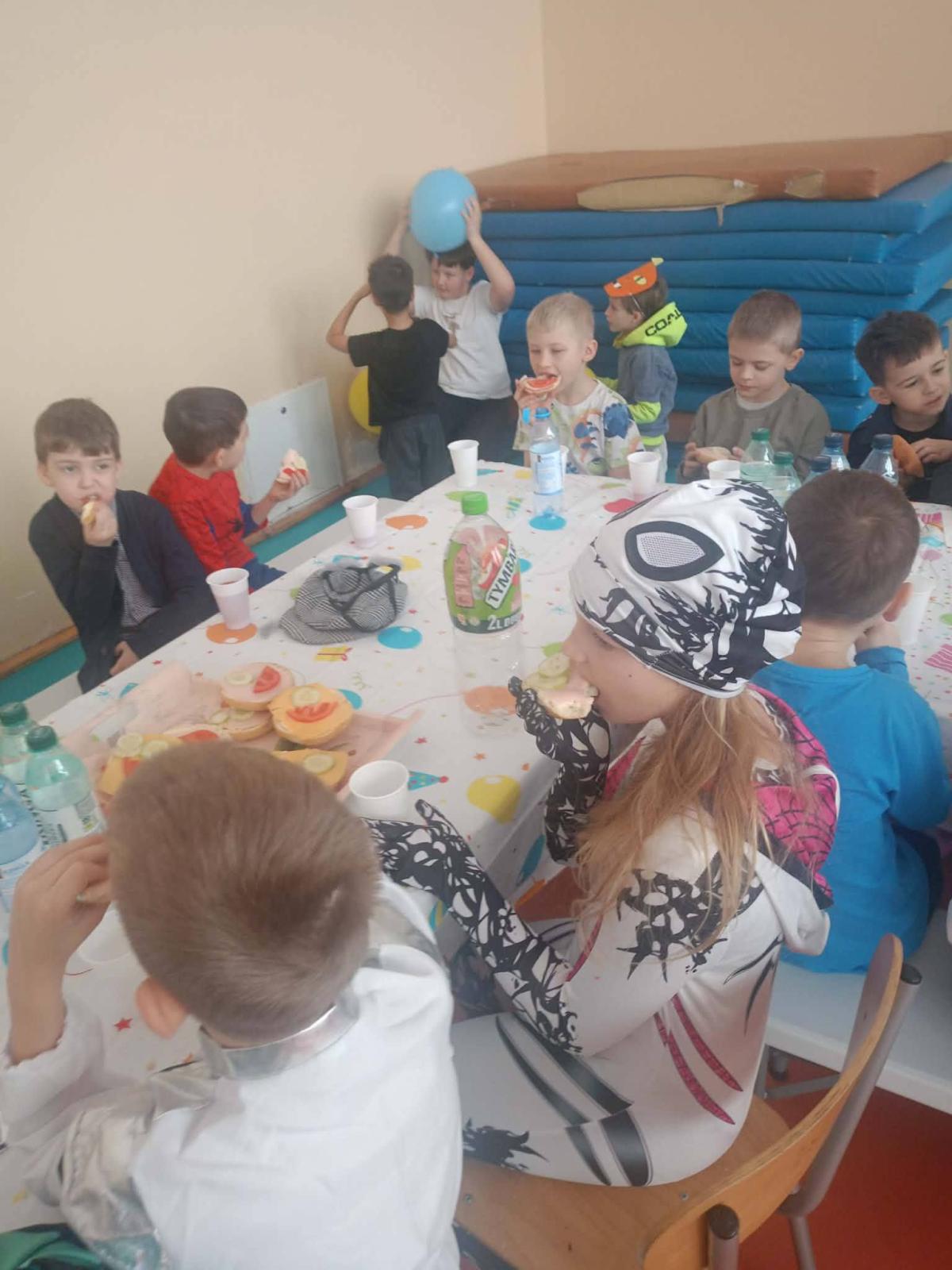 Był to dzień niecierpliwie wyczekiwany. Zjawiskowy wystrój sali wprowadził wszystkich w wesoły nastrój i zachęcił do wspólnej zabawy. Jak zwykle stroje naszych uczniów były różnorodne - od postaci bajkowych po superbohaterów, a także postacie fantastyczne. Tego dnia wszystkim towarzyszyło wiele emocji i wrażeń. Dekoracja zachęcała do wspólnej, wesołej zabawy. W czasie przerwy dzieci miały czas na poczęstunek przygotowany przez Radę Rodziców. Bal był również okazją do wykonania pamiątkowych zdjęć w karnawałowych przebraniach. Czas zabawy szybko minął, ale wszyscy tanecznym, wesołym krokiem ruszyliśmy w stronę swoich domów. Serdecznie dziękujemy naszej Radzie Rodziców, która jak zwykle w 100% podjęła się organizacji kolejnej imprezy w naszej szkole.